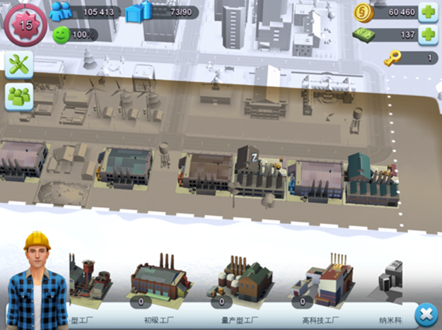 游戏也为玩家提供了解决环境问题的几个思路,把造成污染的工厂、污水处理厂挪到城市角落,但随着城市扩张,可利用的土地面积日益紧缩,很显然这不是一个积极的处理办法。